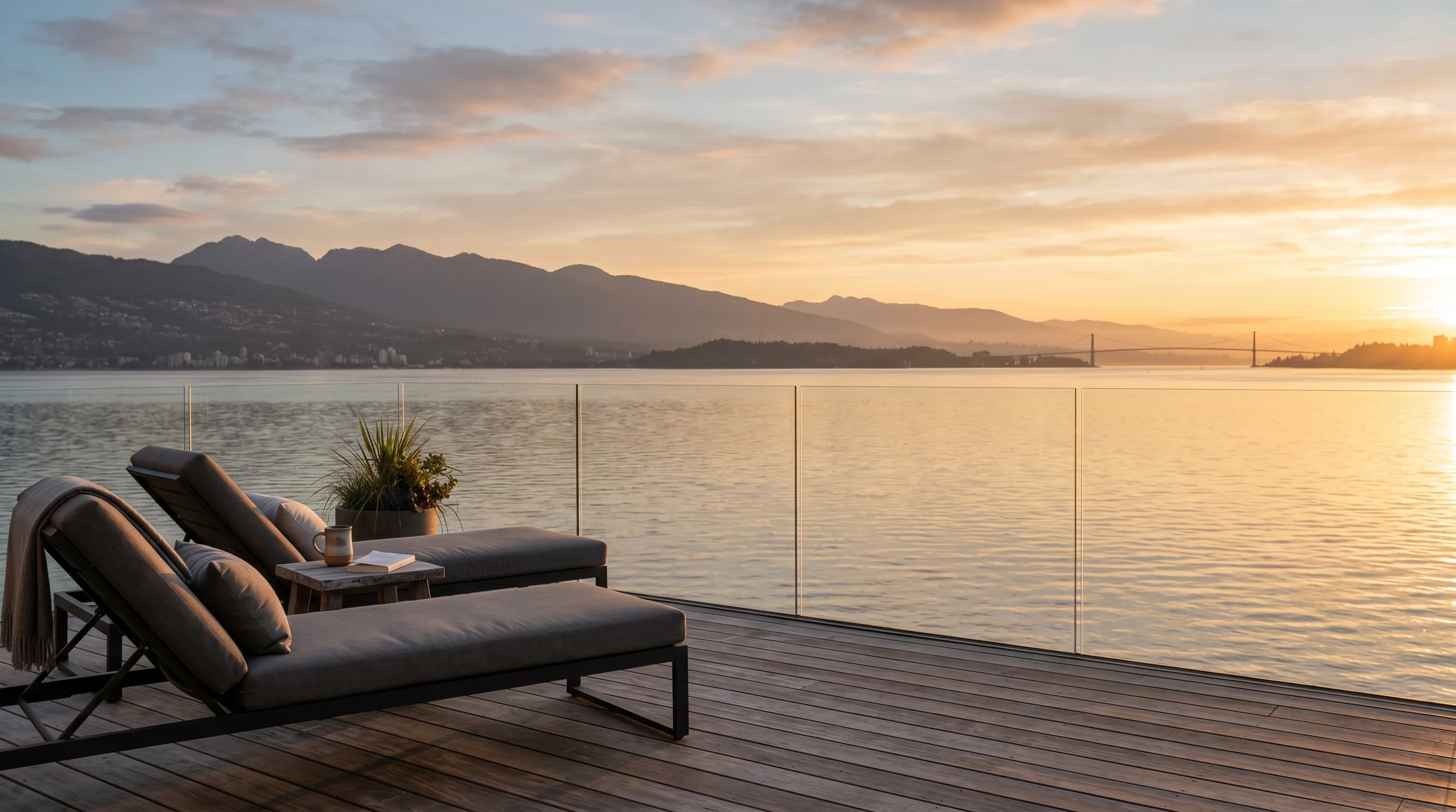 Best for: West Vancouver waterfront homes, Kitsilano penthouse terraces, Point Grey oceanfront — properties where the primary view corridor is uninterrupted and you want the railing to vanish. Full spec on our frameless glass railing systems.